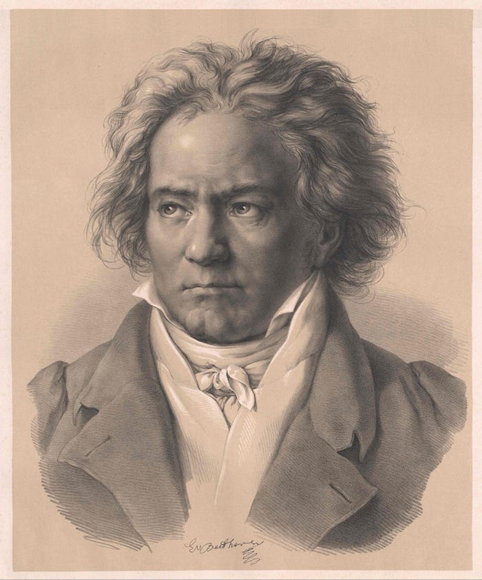 Take Beethoven, for example. The Lincoln penny of Beethoven stamp designs is the portrait of the composer painted by Joseph Karl Stieler in 1820, when the composer was 50 years old. It depicts Beethoven working on the score of his Missa Solemnis.